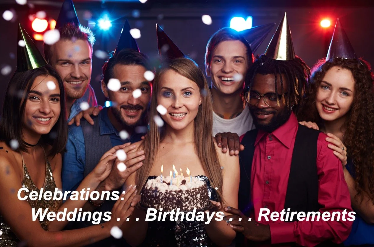 We also produce a 2-hour ambiance video that runs throughout the reception, cocktail hour, and dinner. As photos, videos, and music play, people become excited as they recall their OWN lives, their friends, and their friendships, as well as the person of the hour.